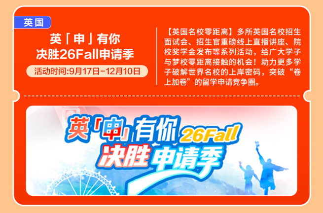 【英国名校零距离】多所英国名校招生面试会、招生官沉磅线上曲播、院校学金发布等系列勾当,又有读完名校的实力